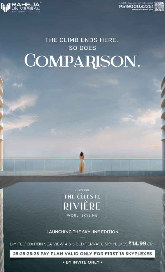 Discover the epitome of elevated living with the **Timeless 4 & 5 Bed SKYPLEX Residences by Raheja Universal**, an exclusive collection of just **18 limited-edition homes** in the heart of **Worli**. Designed for connoisseurs of space, style, and serenity, each residence features **wrapped-around decks** that offer **breathtaking panoramic views** of the city and sea. With **only 3 apartments per floor**, privacy is paramount, and the **best-in-class layouts** ensure seamless functionality with grand aesthetics. Set in a **prime Worli address**, these SKYPLEX Residences redefine luxury living with an unmatched blend of exclusivity, design, and location.