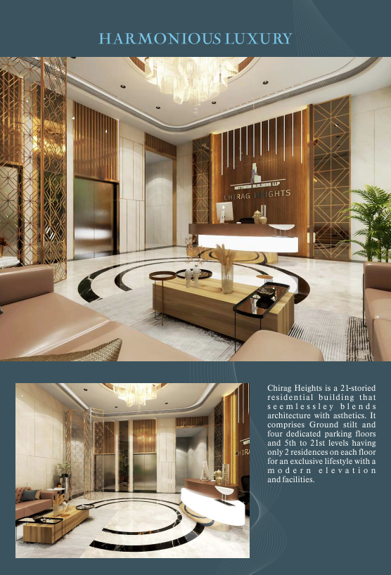 Chirag Heights by Nettheim Builders LLP is an exclusive residential development located in the serene and well-connected Parsee Colony, Tilak Road, Dadar East. Designed with a modern G + 4 level podium plus 16 habitable floors, the project offers spacious 2 BHK (660 sq.ft.) and 3 BHK (920 sq.ft.) residences, featuring full-length windows that invite abundant natural light and ventilation. Residents can enjoy a well-equipped fitness centre along with excellent connectivity—just a 10-minute walk to Dadar Railway Station, 5 minutes to Dadar East Monorail Station, and a quick 2-minute drive to the Eastern Express Highway. Surrounded by essential amenities such as temples, schools, hospitals, and colleges within a 2 km radius