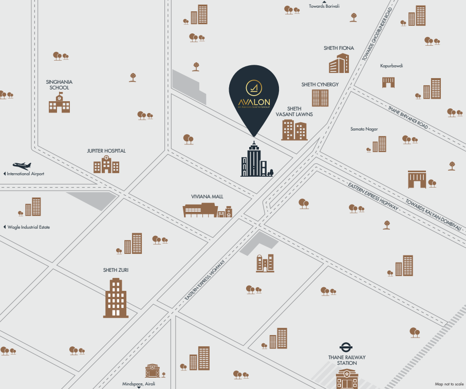 Sheth Avalon is a residential project developed by the Renowned Real Estate Developer. Ashwin Sheth Group. IThe project is located in Thane West, which offers convenient connectivity to Thane Railway Station and an upcoming metro station. The surrounding area provides various options for retail and recreation, including Viviana Mall, R Mall Thane, and Korum Mall. In terms of healthcare facilities, residents can access Jupiter Hospital, Hiranandani Hospital, ESIC Hospital, and Bethany Hospital. Ashwin Sheth Group is the developer behind Sheth Avalon. They are known for their expertise in the real estate industry. Thane West, the location of the project, is a desirable area known for its connectivity and proximity to various amenities, making it an attractive choice for homebuyers. It is a multi-story building consisting of a basement, ground floor, and four upper floors, along with a 32-story tower, offering 3 and 4 BHK Residences. The project offers more than 40 amenities designed by Sussanne Khan, including an amphitheater, basketball court, jogging track, landscaped garden, open gymnasium, kids' play area, indoor games room, senior citizen zone, swimming pool, squash court, cafe, bar, and many more. Tower A&B- 2025 December and Tower C- 2024 December.