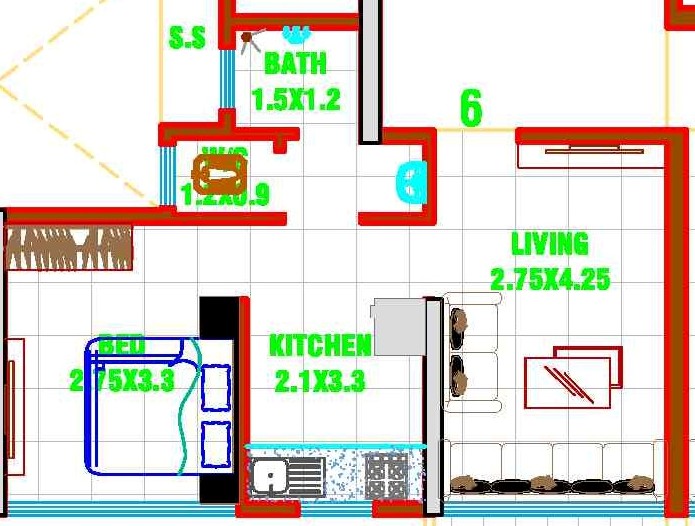 1 BHK apartment | 610 Sq. ft. area / 366 Sq. ft. carpet.
