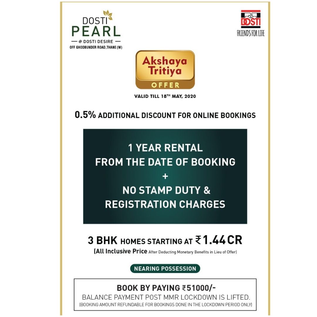 Dosti Desire Pearl is tagged as RERA Approved / Investors Delight / Self Use / Lifestyle Property / Premium Property.