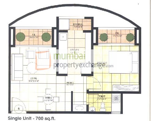 1 BHK apartment | 700 Sq. ft. area / 483 Sq. ft. carpet.