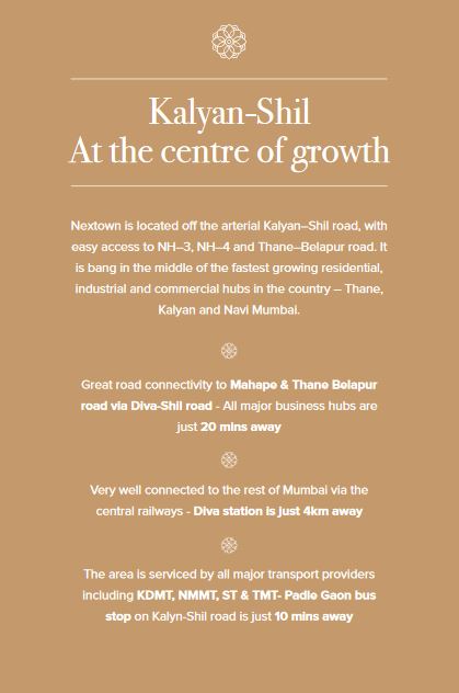 Marathon Nextown is a Project by Mrathon Group. It is located off Kalyan Shill Road. 18 min from Dombivali station and 15 min from Diva Station. Adjacent to upcoming Airoli-Katai tunnel road. Get to Airoli in 15 mins. Close proximity to all the daily convenience. It offers 1 and 2 BHK Residences. Well designed apartments. Amenities include club house amenities and outdoor amenities. It is a RERA approved project.
