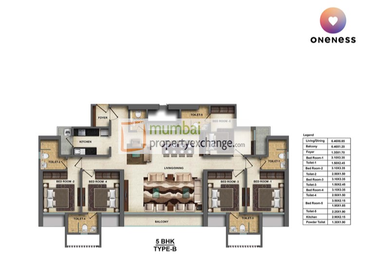 5 BHK apartment | Sq. ft. area / 1720 Sq. ft. carpet.