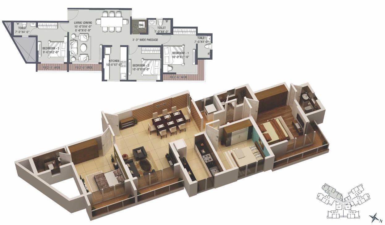 3 BHK apartment | 1300 Sq. ft. area